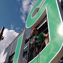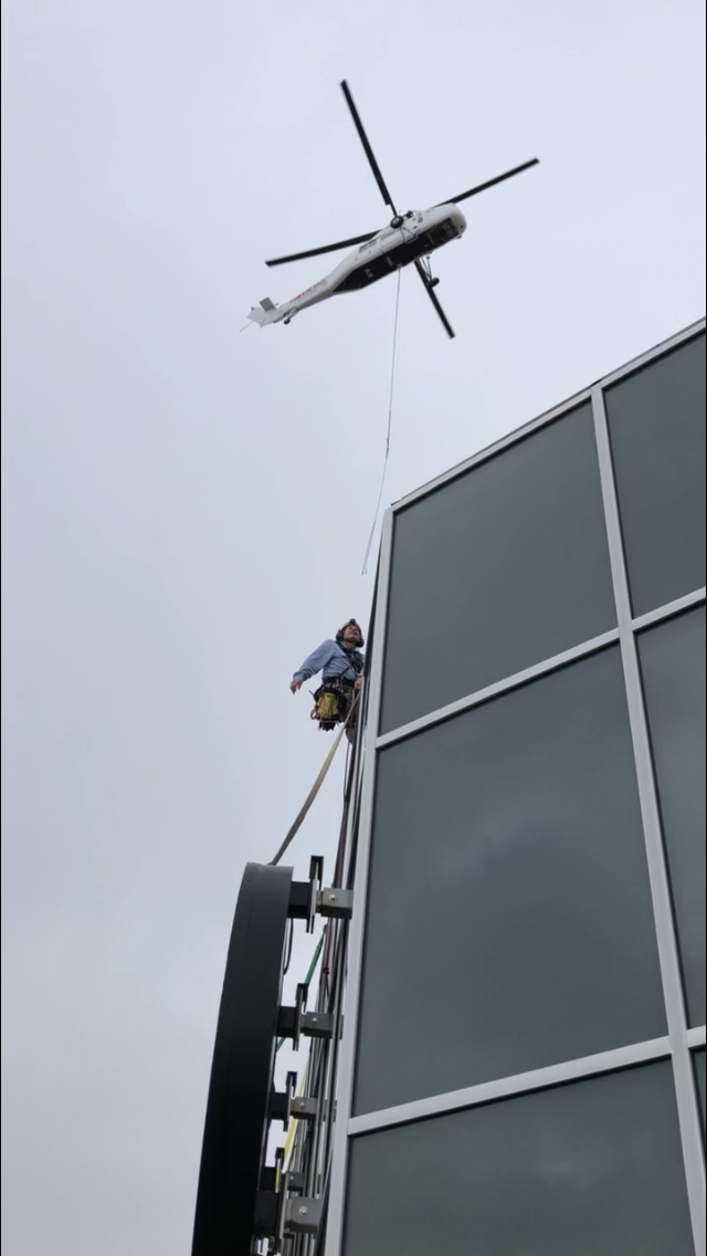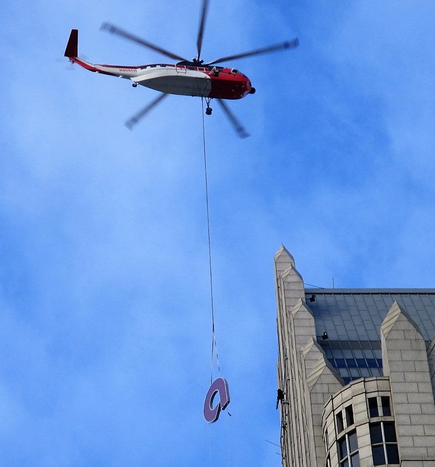 We are the leading specialist in the installation of signage on tall structures nationwid. We utilize a helicopter to lift these sometimes very large signs to the top of some of the tallest structures nationwide. Currently High Angle Services has completed 1079 helicopter lifts of signage, and sign related components to date.